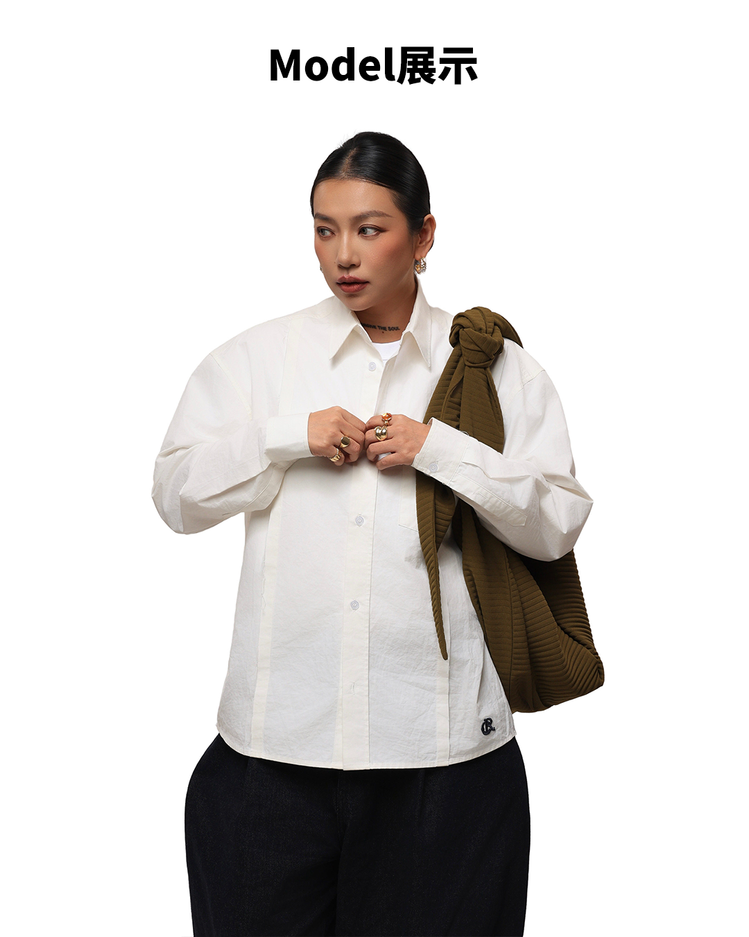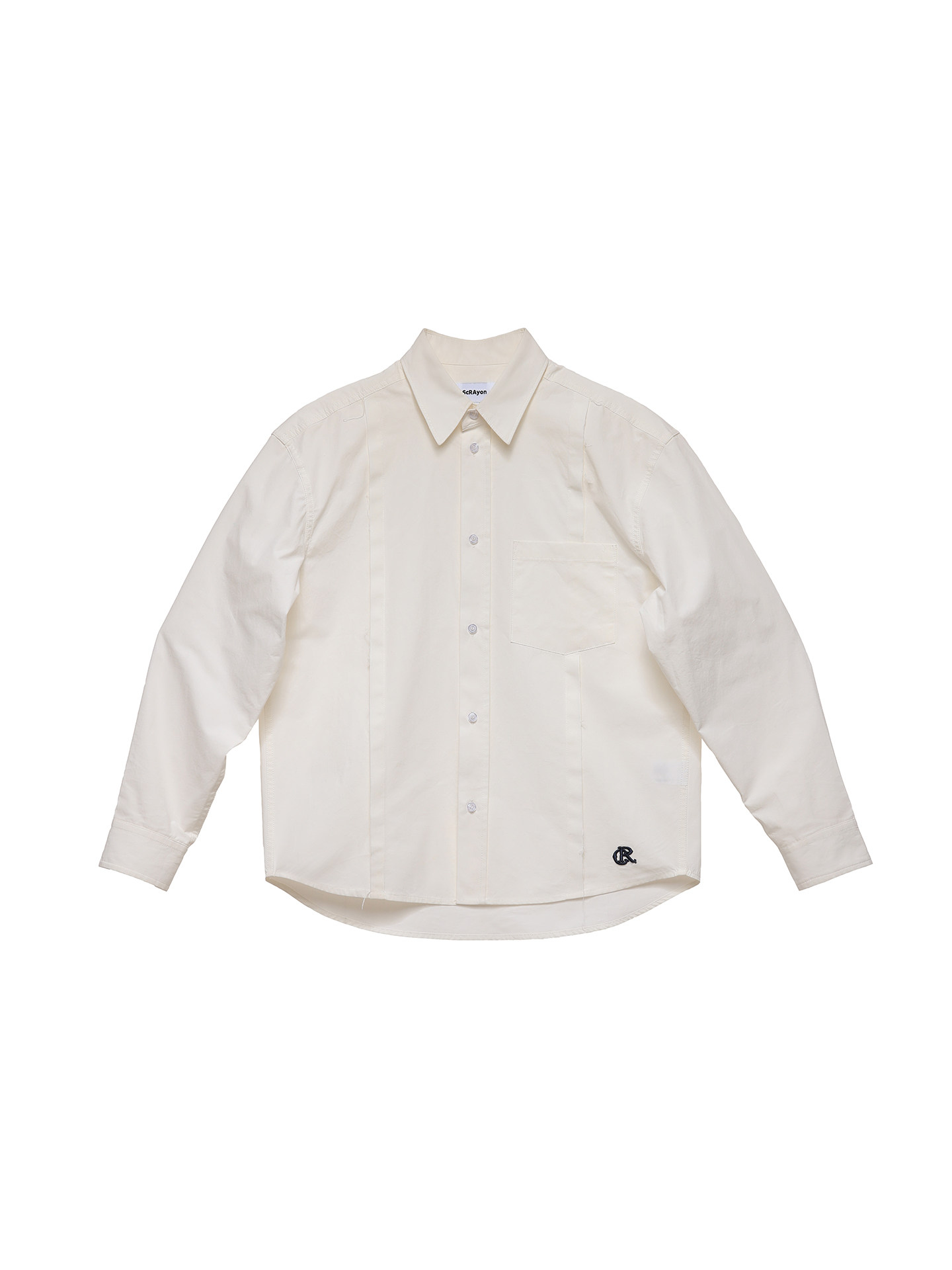 this patchwork shirt features raw-edge panel stitching that creates a three-dimensional layered effect—blending classic elements with a fresh, modern twist.