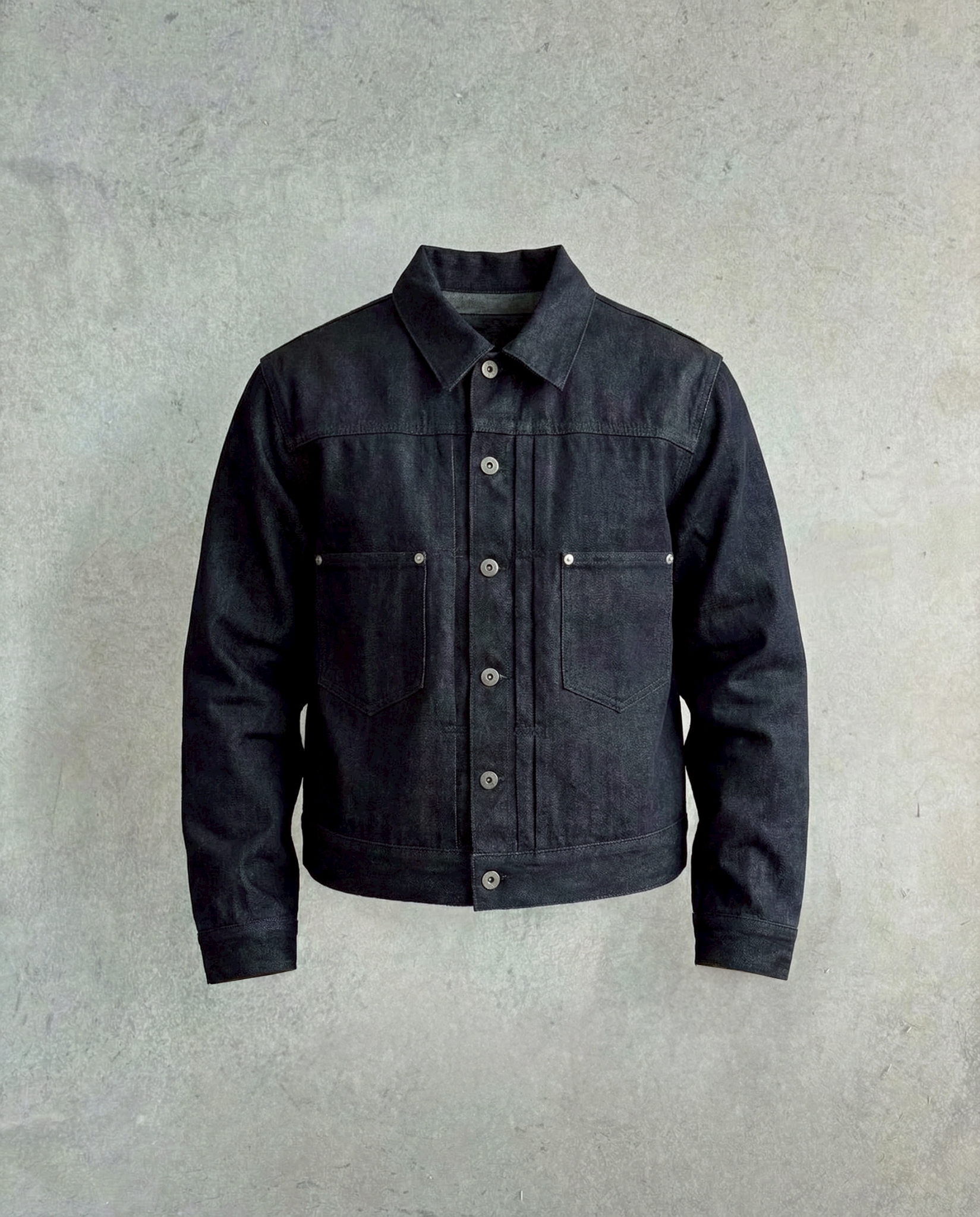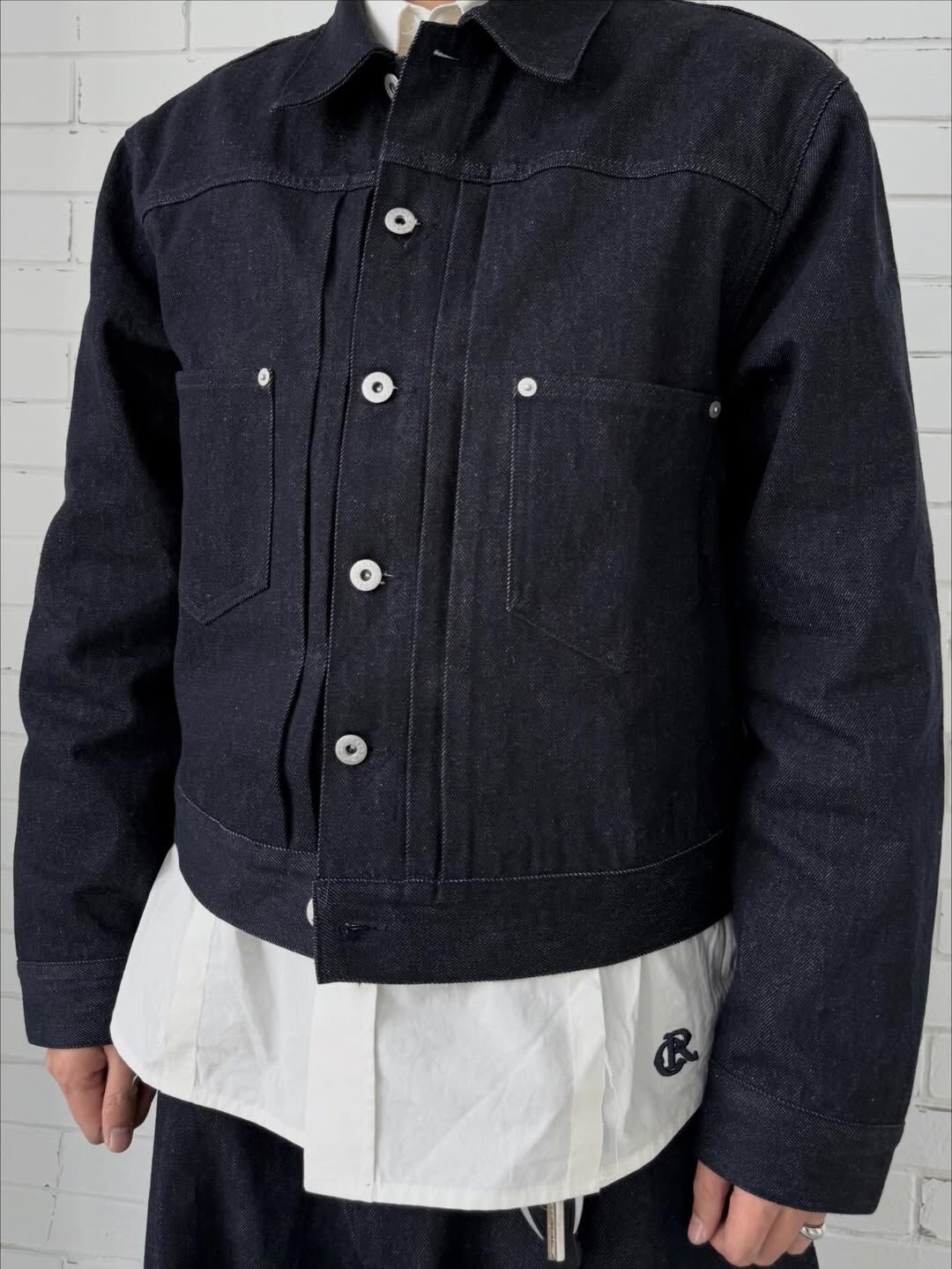 以 11.3oz 不褪色丹寧布製作,布料硬挺、版型俐落,