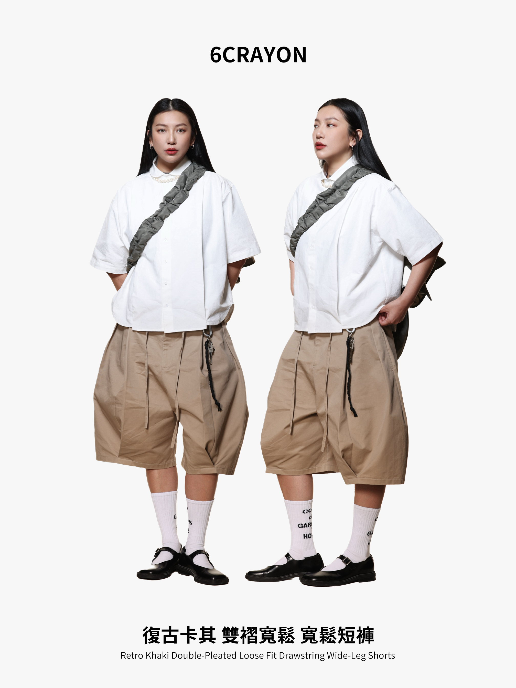 來自 6cRAyon 的短版牛津襯衫,以圓領設計與細緻打褶細節打造立體層次感,呈現經典與新穎融合的復古風格。
