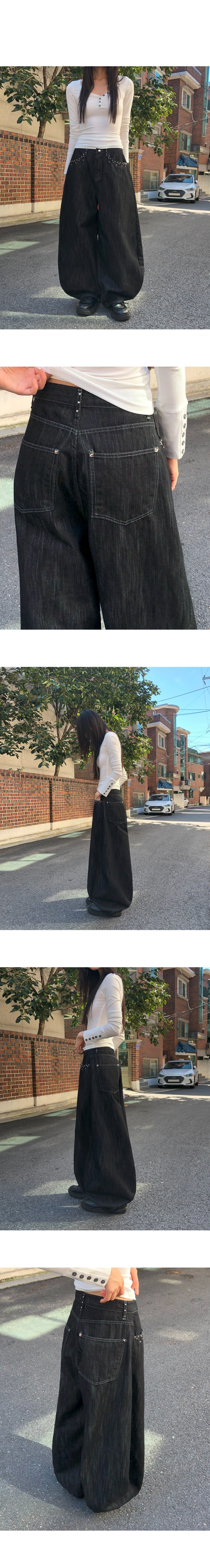 鉚釘設計搭配黑色牛仔布料