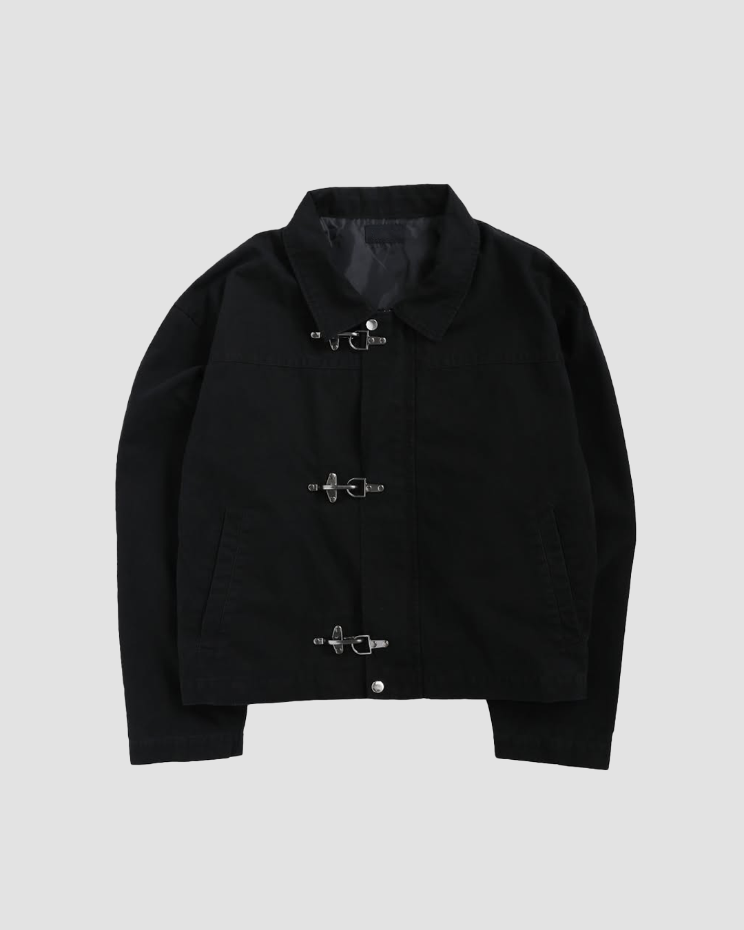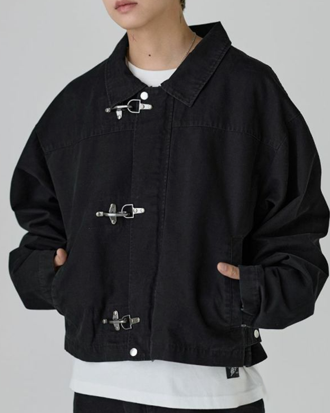 ・以消防扣環為亮點設計的短版帆布外套