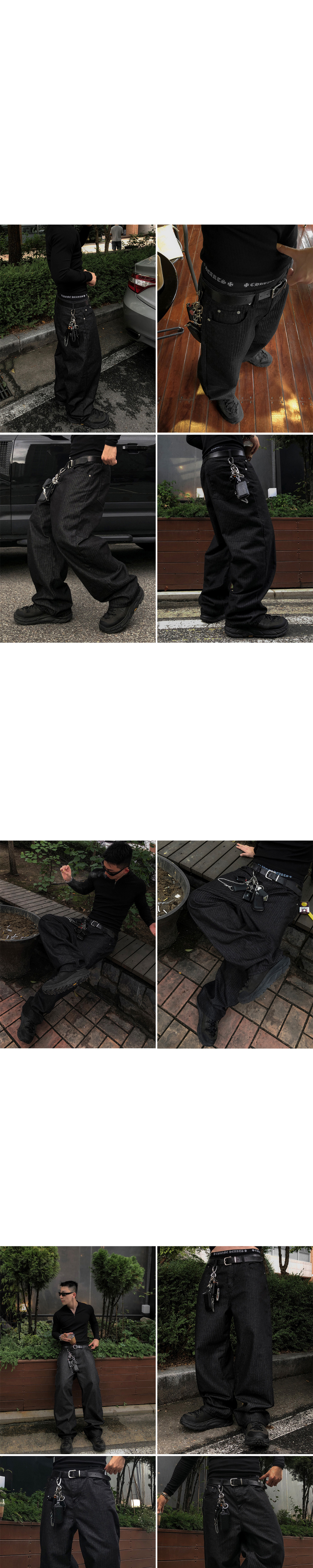 M 號:腰圍 40 / 褲襠 31 / 大腿寬 34.5 / 褲管寬 24.5 / 全長 105.5