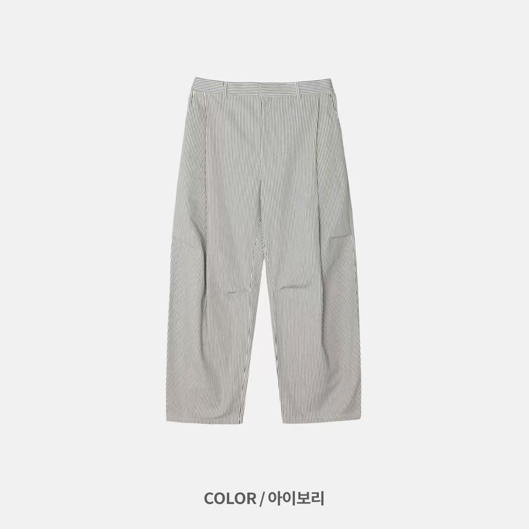 這款褲子結合俐落的曲線剪裁與條紋圖案,