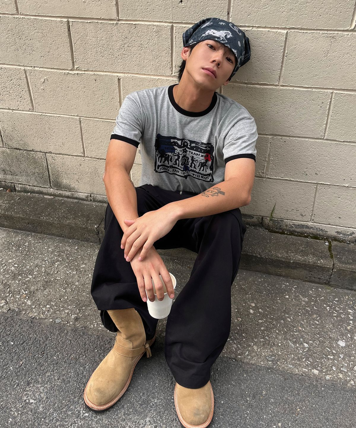 From the Korean emerging brand THEVINYLHOUSE, this T-shirt combines classic ringer details with a playful cowboy pictogram graphic, blending street attitude with a nostalgic vintage vibe.