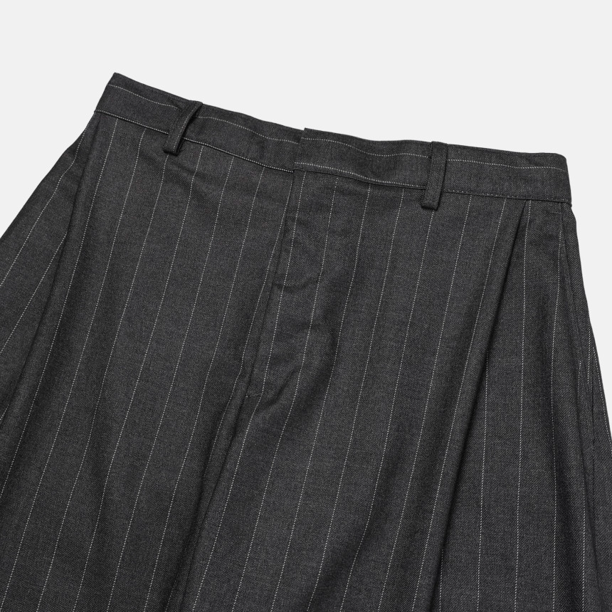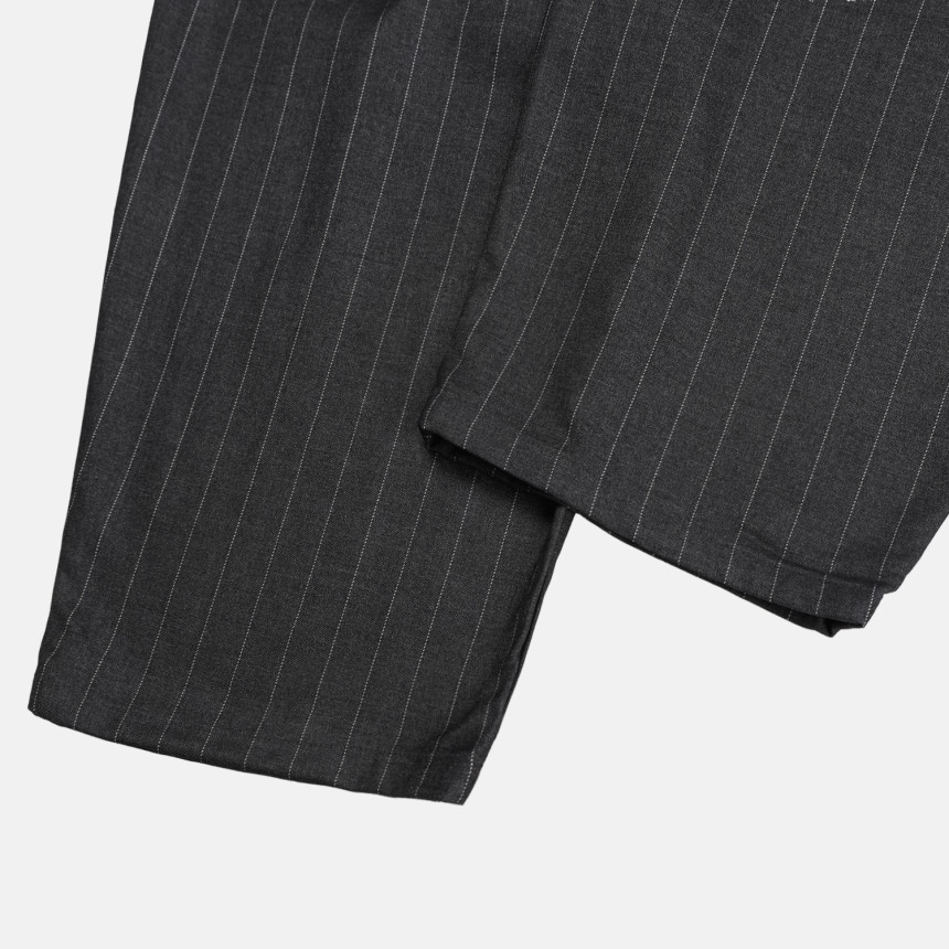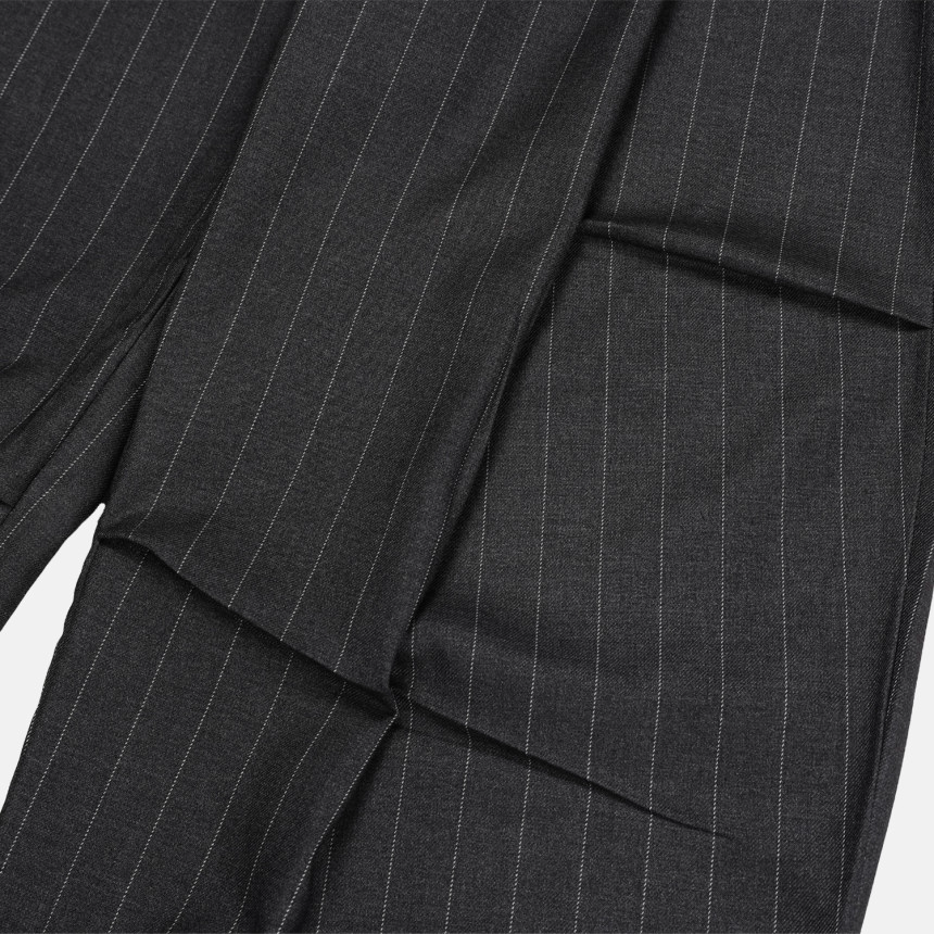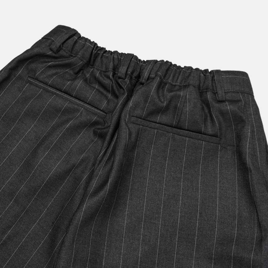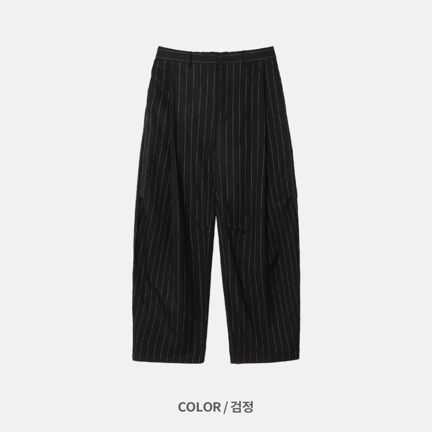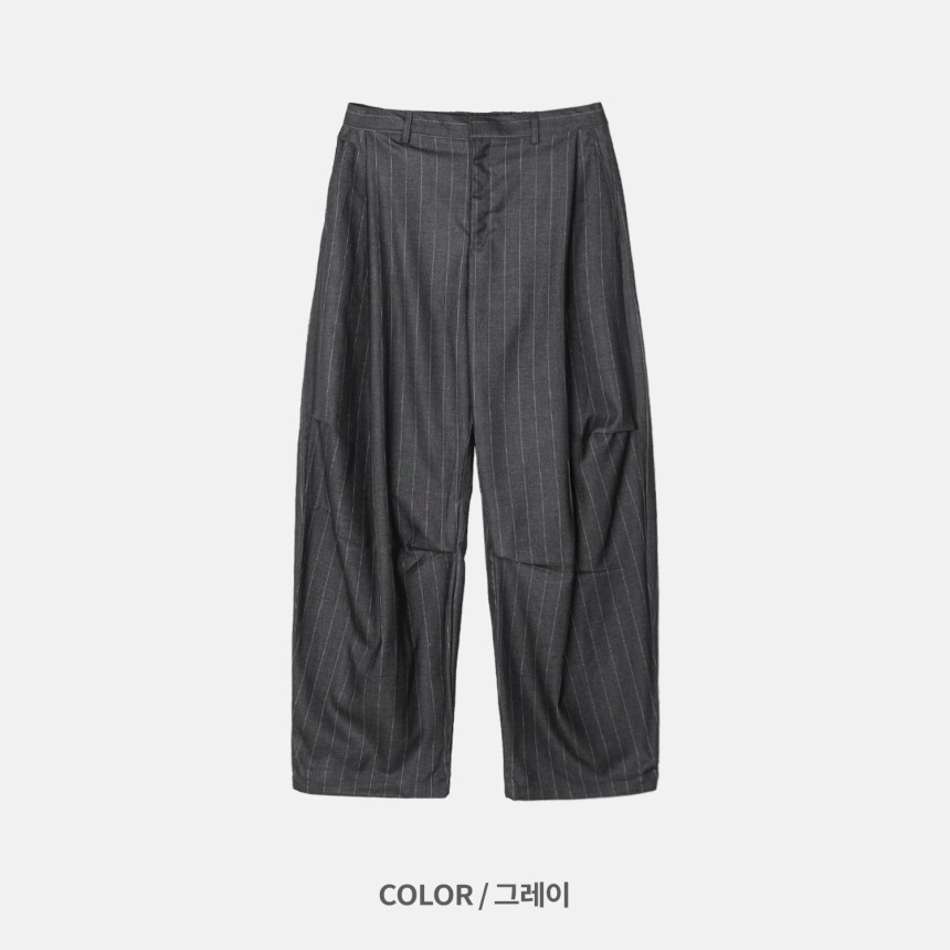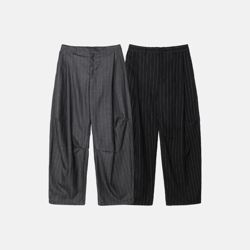 這款褲子結合俐落的曲線剪裁與條紋圖案,